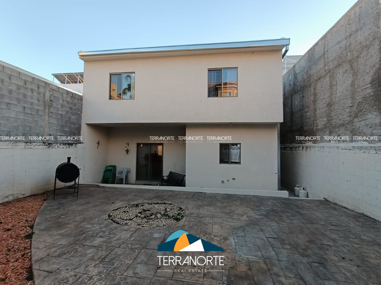 Patio grande con estampado de concreto